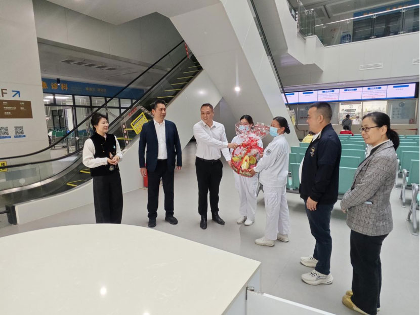 慰问过程中,梁泽基副镇长一行深入医院各重点科室,实地查看科室运行情况,与一线医护人员亲切交流,详细了解医院医疗服务、人才建设、专科发展等方面的工作现状,向全体医务工作者致以新春的美好祝福和崇高敬意,对医院过去一年在守护辖区群众健康、推动基层医疗卫生事业发展中取得的成绩给予充分肯定。